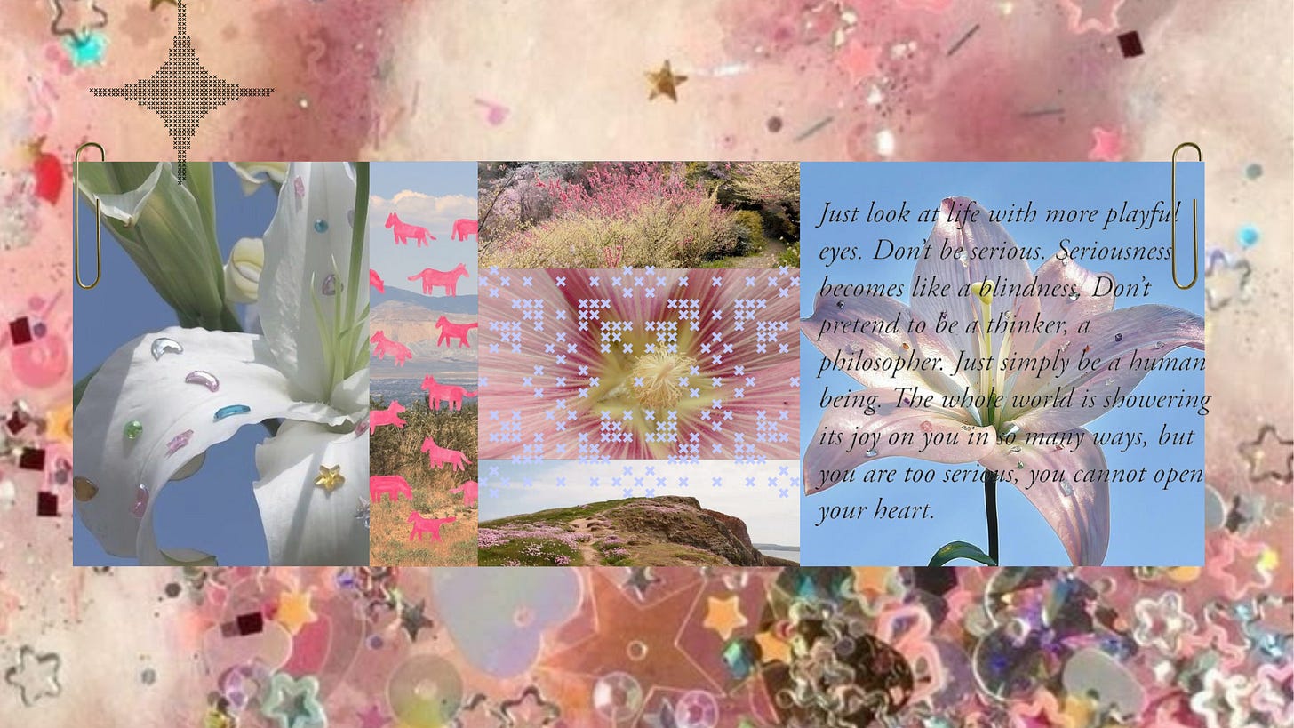 Oh my god lately I've been thinking a lot about our own creative practices and how they are even more important and joyful than the end result itself. The ideas around being creative = being an independent thinker, about incorporating play and about giving yourself some space since the creative process is a slow and deliberate one really resonates with me 💌 Plus the mention of Wild Geese and poetry watching and the fact that art lies within the perception of the ordinary. Ahh a wonderful essay 🌸